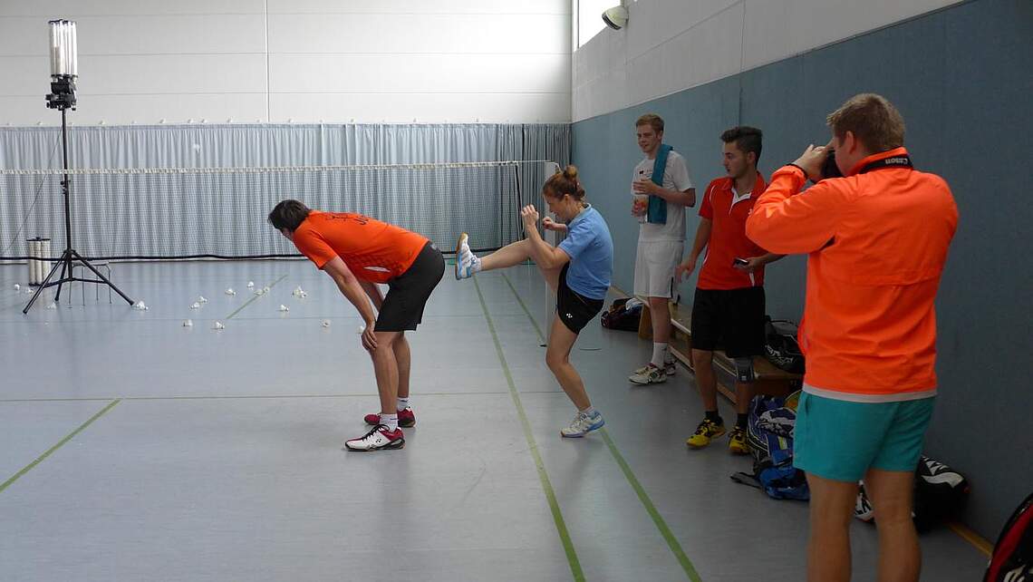 Beim anschließenden Schnellkraftzirkel mussten unsere Oberschenkelmuskeln bei Burpees, Steige- und Kreuzsprüngen schon mal ihre Säuretoleranz beweisen. Danach ging es mit dem Badmintonspezifischen Training auf dem Feld los. Jürgen hatte für uns abwechslungsreiche Übungen zu den Themen Schlagsicherheit, Abwehr und Spiel am Netz vorbereitet. Stundenlang wurden Bälle gesmasht, abgewehrt, abgefangen und abgelegt bis auch das letzte Hemd völlig durchnässt war. Kurz vor Schluss übernahm Sportökonom Daniel die erschöpfte Gruppe und erfreute (haha) alle mit einem netten Stabilisationsprogramm. Die letzte Übung des Tages war eine Bauchmuskelchallenge die von unserer zweitjüngsten Spielerin Patricia gewonnen wurde! Herzlichen Glückwunsch.