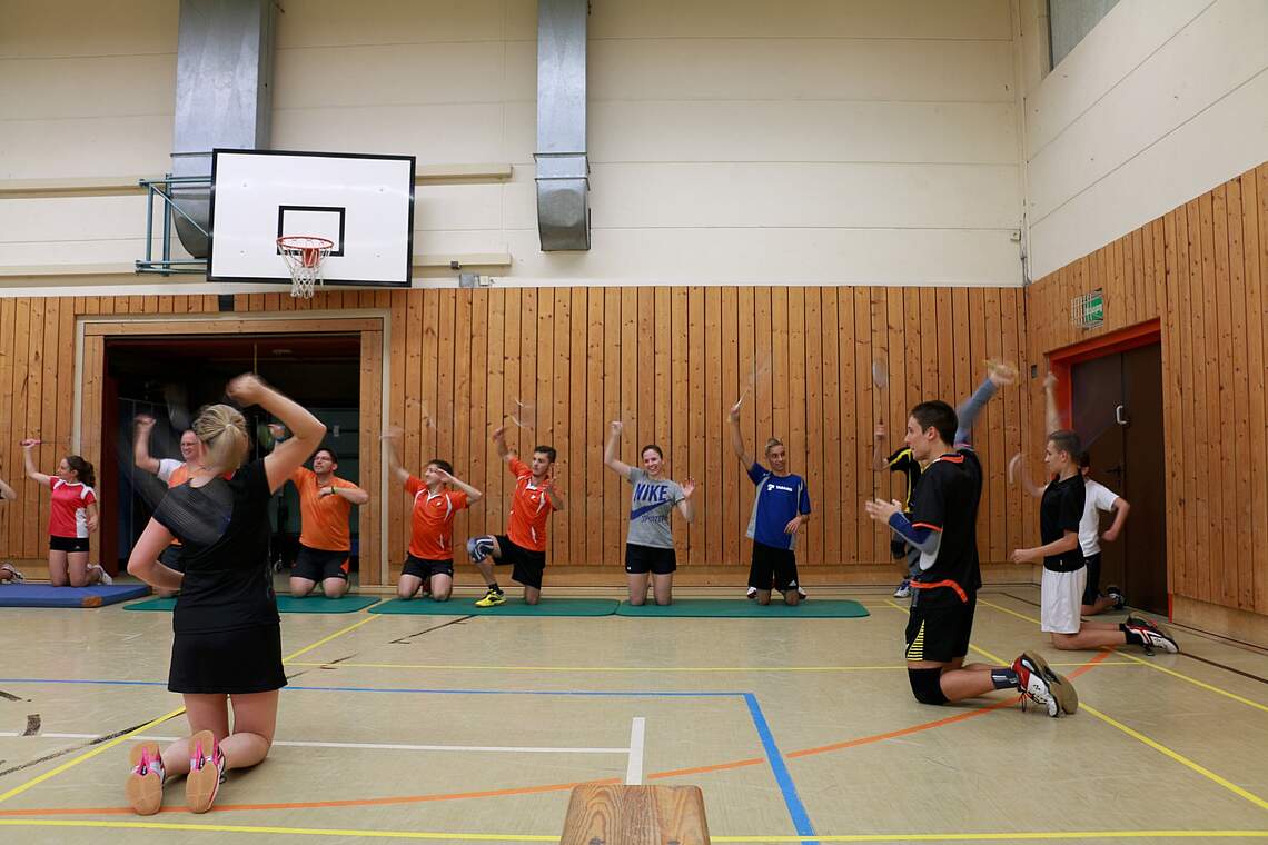 Bereits zum dritten Mal veranstaltete die Badmintonabteilung ein Intensivtraining um sich konditionell und technisch auf die Saison vorzubereiten. Am Samstag trafen sich um 10 Uhr insgesamt 20 Spieler(innen) aller Alters- und Leistungsklassen (Jugendmannschaft bis Bayernliga) in der vereinseigenen Halle um in den nächsten 7 Stunden gemeinsam zu trainieren. Nach der Begrüßung durch unseren Sportwart Holger und Abteilungsleiter Jürgen „moveten und groovten“ wir uns unter der Leitung von Simone zu fetziger Musik warm.