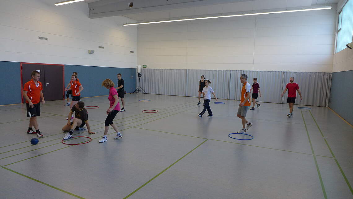 Beginn war um 10.00 Uhr. Trotz der frühen Anfangszeit fanden sich 24 motivierte Spieler und Spielerinnen aller Alters-und Leistungsklassen in der TSV Halle ein. Nach einer kurzen Begrüßung durch Holger und Jürgen, gestaltete Simone ein abwechslungsreiches und spielerisches Aufwärmprogramm, begleitet von fetziger Musik. Koordinationsläufe, Footwork, ein Ballspiel und Schattenbadminton brachten die Socken der Teilnehmer zum qualmen!