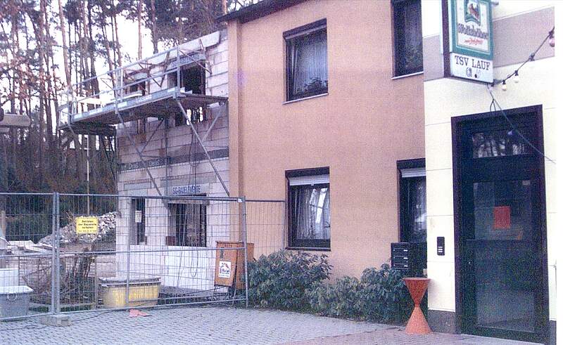 Der TSV Lauf folgt den Empfehlungen der Stadt und beschließt während der Mitgliederversammlung 1998 die Durchführung der notwendigen Baumaßnahmen. Damit sollen die sanitären Engpässe beseitigt werden und die Musiker geeignete Räumlichkeiten verfügbar haben. Gleichzeitig wird die Errichtung einer Wohnung für den Vereinswirt und damit verbunden die Erweiterung der Hausmeisterwohnung abgesegnet. Ziel des Beschlusses ist es, den Vereinswirt an das Gelände zu binden um häufige und teure Pächterwechsel zu vermeiden. Diese Argumentation hat auch für den Hausmeister zu gelten, da er ständig auf der Sportanlage präsent sein soll und deswegen die Wohnung auch beziehen müsse.