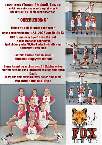 * Cheerleading * Cheerleading ist eine immer beliebter werdende Sportart, die aus Turnen, Akrobatik wie Pyramiden und Stunts sowie Tanz besteht.