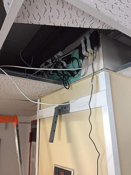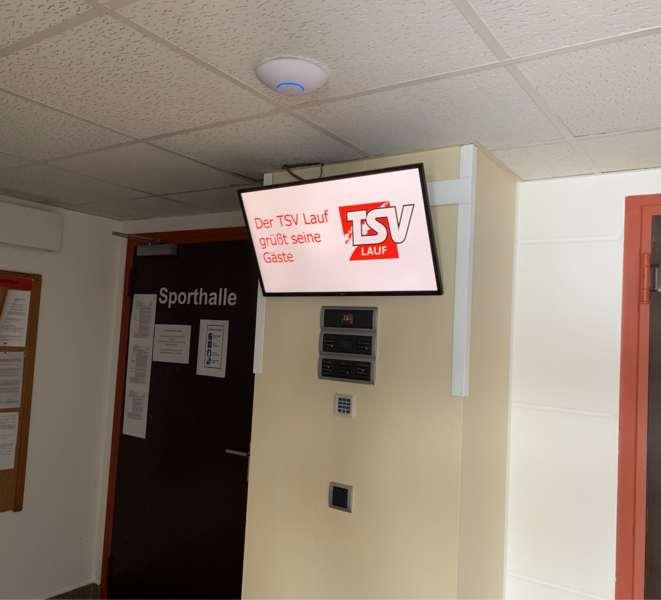 Die „Einkaufsliste“ war lang, angefangen von Netzwerkswitchen, über PC’s, bis hin zu einem Lichtwellenkabel und dann ging es auch schon los. Zahlreiche Decken wurden von Siggi geöffnet und mehrere hundert Meter Strom und Netzwerkkabel verlegt. Mit freundlich Unterstützung der Firma Elektro Stilper wurde vom Telefonanschluss im Vereinsheim zur Turnhalle ein Lichtwellenkabel verlegt. Der alte Telekom Router wurde ersetzt, zwei Bildschirme wurden montiert, die beiden PC’s und die Digital Signage Software wurde konfiguriert. Nach etlichen Stunden Arbeit wurde das Projekt erfolgreich abgeschlossen.