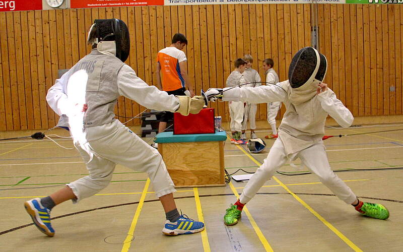 Heike Matthis, TSV-Fechtlehrerin, hatte den Wettbewerb ins Leben gerufen. Seit Jahren vermittelt sie an der Richard-Glimpel-Schule im Rahmen des Verbändekarussells die Grundlagen des Fechtsportes. Zum Event waren Schüler der Johann-Scharrer-Realschule Hersbruck, der Waldschule Rückersdorf, dem Christoph-Jacob-Treu-Gymnasium Lauf, der Richard-Glimpel-Schule Lauf, der Grundschule Neunkirchen am Sand und der Bertleinschule Lauf angetreten.