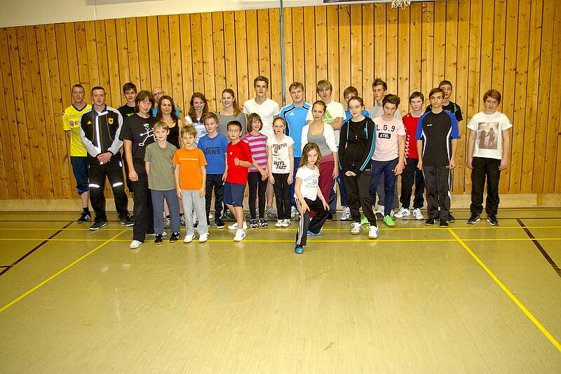 Fechten ist eine total gefragte und angesagte Sportart beim TSV Lauf. Die Aufnahme entstand vor dem Training. Die Jugendlichen dominieren das Geschehen und sind von der anspruchsvollen und filigranen Sportart total begeistert. Auf dem Foto sind bei weitem nicht alle Sportlerinnen und Sportler zu sehen. Beim Fechttraining ist die Halle voll.