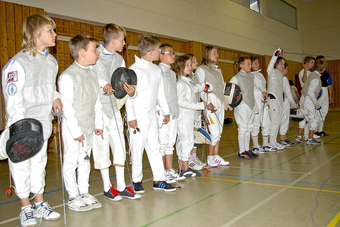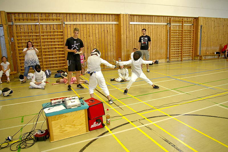 Bei gefühlten 40 Grad in der TSV-Turnhalle an der Röthenbacher Straße und einer, über 5-stündigen Turnierdauer wurde im Mannschaftswettbewerb für die jüngeren Teilnehmer und im Einzelwettbewerb bei den Jugendlichen gefochten. Fechttrainerin Heike Matthis und die Mitglieder der TSV-Fechtabteilung sorgten für einen reibungslosen Ablauf der Veranstaltung. Angeschlossen an die elektronische Trefferanzeige wurden die Auseinandersetzungen in der Disziplin Florett auf der Fechtbahn ausgetragen. Die Teams traten unter besonderen Pseudonymen wie ‚Die Frikadellen‘, ‚Die Gefährten‘ oder ‚Die Tigers‘, an. Den Sieg errangen die jungen Fechter vom Gymnasium Hersbruck.