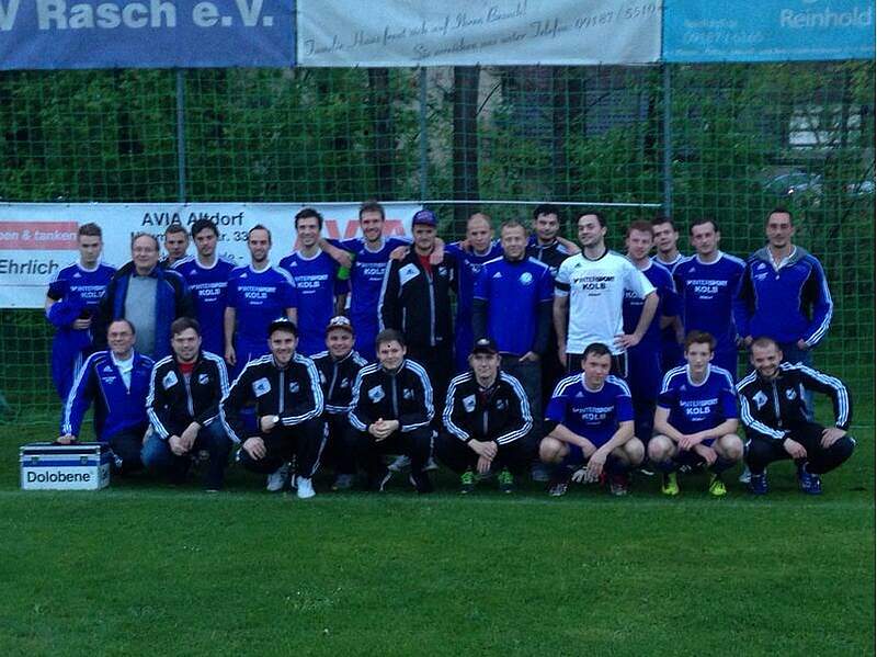 Im Mai lies es der vollgepackte Spielplan endlich zu und so machte sich ein Trupp aus ca. zehn Spielern der Vollmannschaften auf, um den SV Rasch bei seinem Derby am Mittwochabend gegen den 1.FC Altdorf zu unterstützen. Der Grund dieser Auswärtsfahrt war es Kontakte zu den Spielern, sowie den Verantwortlichen des SV Rasch zu bekommen, um eine „Freundschaft" zwischen den beiden Vereinen aufzubauen. Ein voller Erfolg - wurde doch nach dem Spiel bis tief in die Nacht gemeinsam gefeiert.