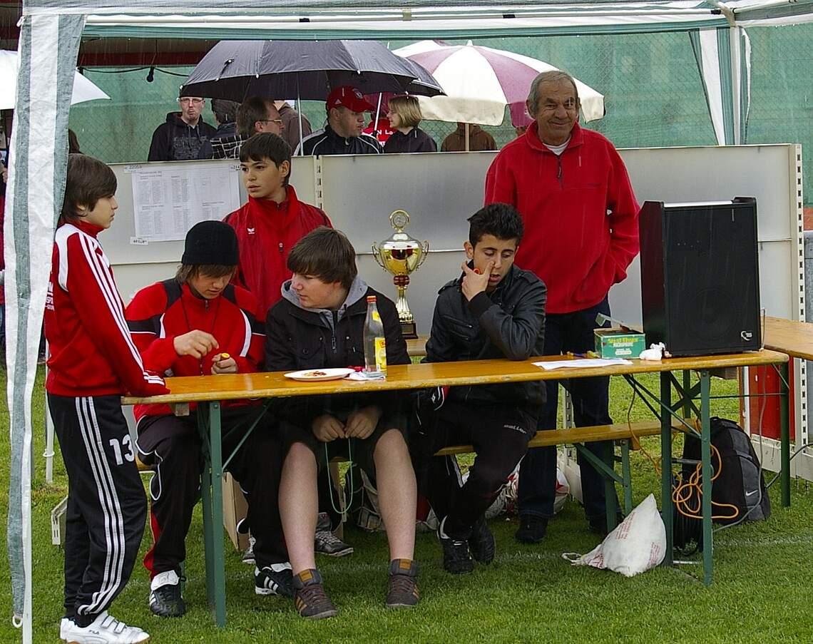 Jedoch war die Platzierung nicht so wichtig, erhielten doch alle teilnehmenden Mannschaften einen wertvollen Spielball und reichlich Süßigkeiten. Die Bilder zeigen hoffentlich etwas vom regenTreiben am Sportplatz und davon, dass man auch bei Regen gut gelaunt sein kann.