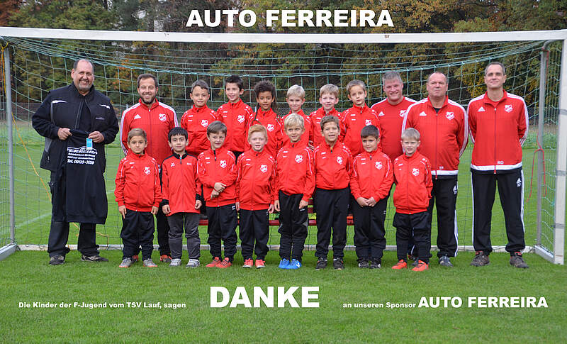 Die F-Jugend freut sich über einen neuen Trikotsatz und neue Trainingsanzüge. Als großzügiger Sponsor konnte Jorge Ferreira als Inhaber der Laufer Autowerkstatt "Auto Ferreira" mit Sitz in der Röthenbacher Straße 3 gewonnen werden.