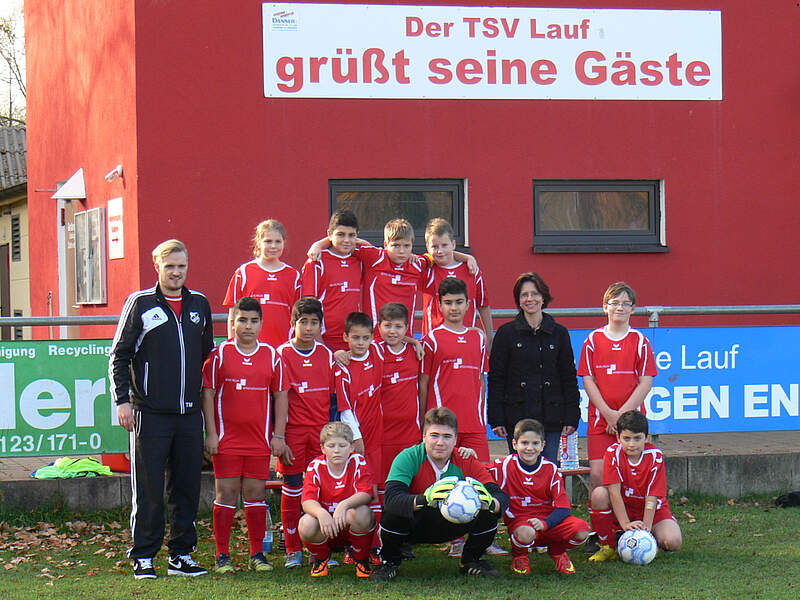 Der D-Jugend des TSV Lauf wurde in der vorweihnachtlichen Zeit eine Freude gemacht, da sich Versicherungsmaklerin Beate Pelka (mittl. Reihe, zweite von rechts) großzügig zeigte und der Jugend einen neuen Trikotsatz sponserte.