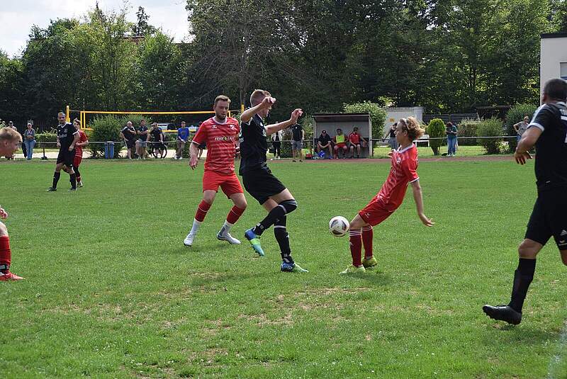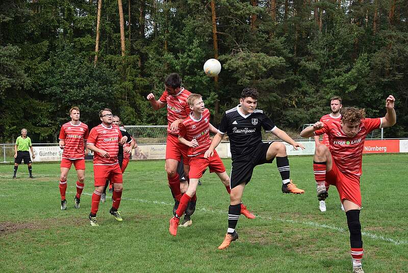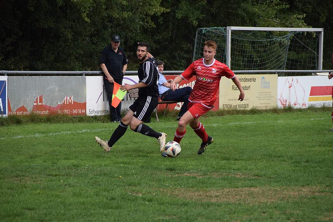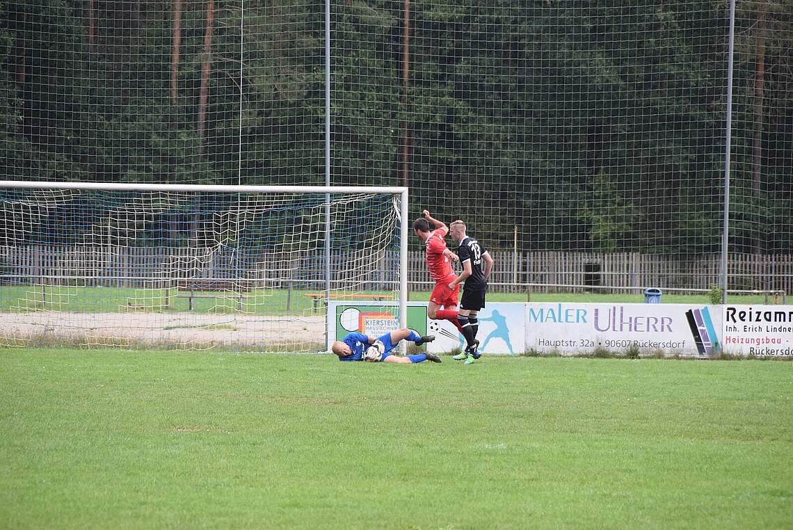 Den Schlusspunkt einer wilden ersten Hälfte setzte allerdings der Torjäger der Rückersdorfer. Wieder war es E. Muric in der 35. Minute, der nach einer Unaufmerksamkeit von Torhüter M. Beyer auf 2:3 verkürzte.