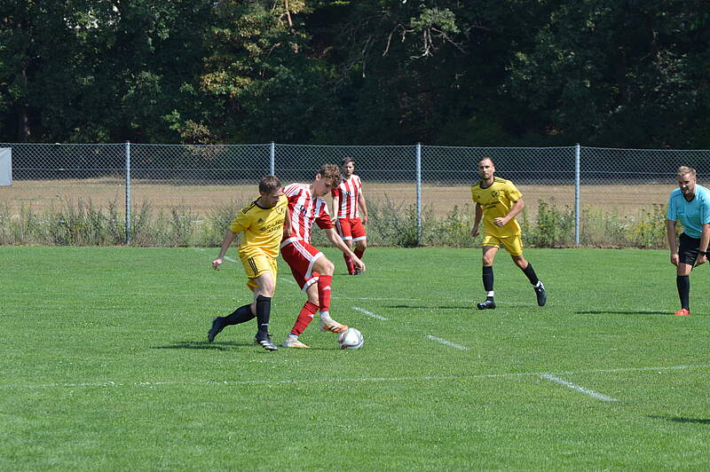 Das Spiel begann seht temporeich und wurde von beiden Mannschaften intensiv mit vielen Zweikämpfen angegangen, ganz zu Lasten der Torchancen, die Mangelware waren. Die knapp 70 Zuschauer sahen in Halbzeit 1 eine ausgeglichene Partie mit leichten Feldvorteilen für die Gäste. Negatives Highlight war die schwere Verletzung von Koni, der sich ohne Fremdeinwirkung das Knie verdrehte. Gute Besserung an dieser Stelle, werde schnell wieder gesund.