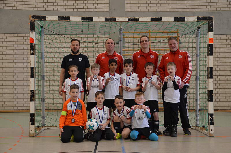 Nach der Siegerehrung präsentierten die Spieler um Trainer Manfred König und Polat Ramadan sowie die Betreuer Thomas Pruschowitz und Ralf Oberhäuser ihre Medaillen und können zurecht stolz auf Ihre spielerisch und kämpferisch tolle Leistung sein. Die Trainer, Betreuer, Eltern und sonstigen Unterstützer waren es allemal!