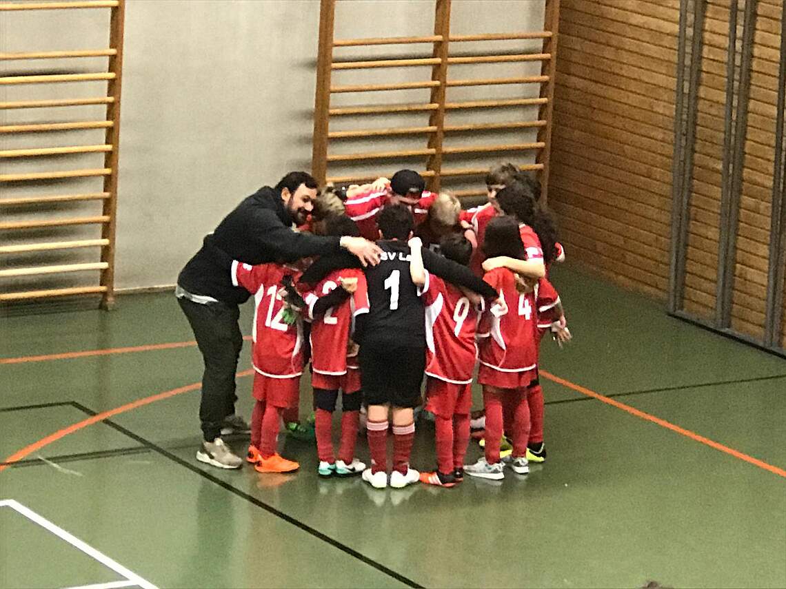 Hier traf man als krasser Außenseiter auf die wohl spielerisch stärkste Mannschaft des Turniers den TSV Buch, der die A-Gruppe souverän gewonnen hatte. Aber endlich hatten die Mädels und Jungs ihren Trainern mal ordentlich zugehört. Egal ob es die älteren Louis, Aytu Tom oder Gabriel waren oder die Mädels Lucia und Sana oder die zur Verstärkung eingeflogenen F-Junioren Can, Taha oder Vassili. Alle deckten ihre Gegner so zu, das diese ihre spielerische Klasse zu keinem Zeitpunkt ausspielen konnten.