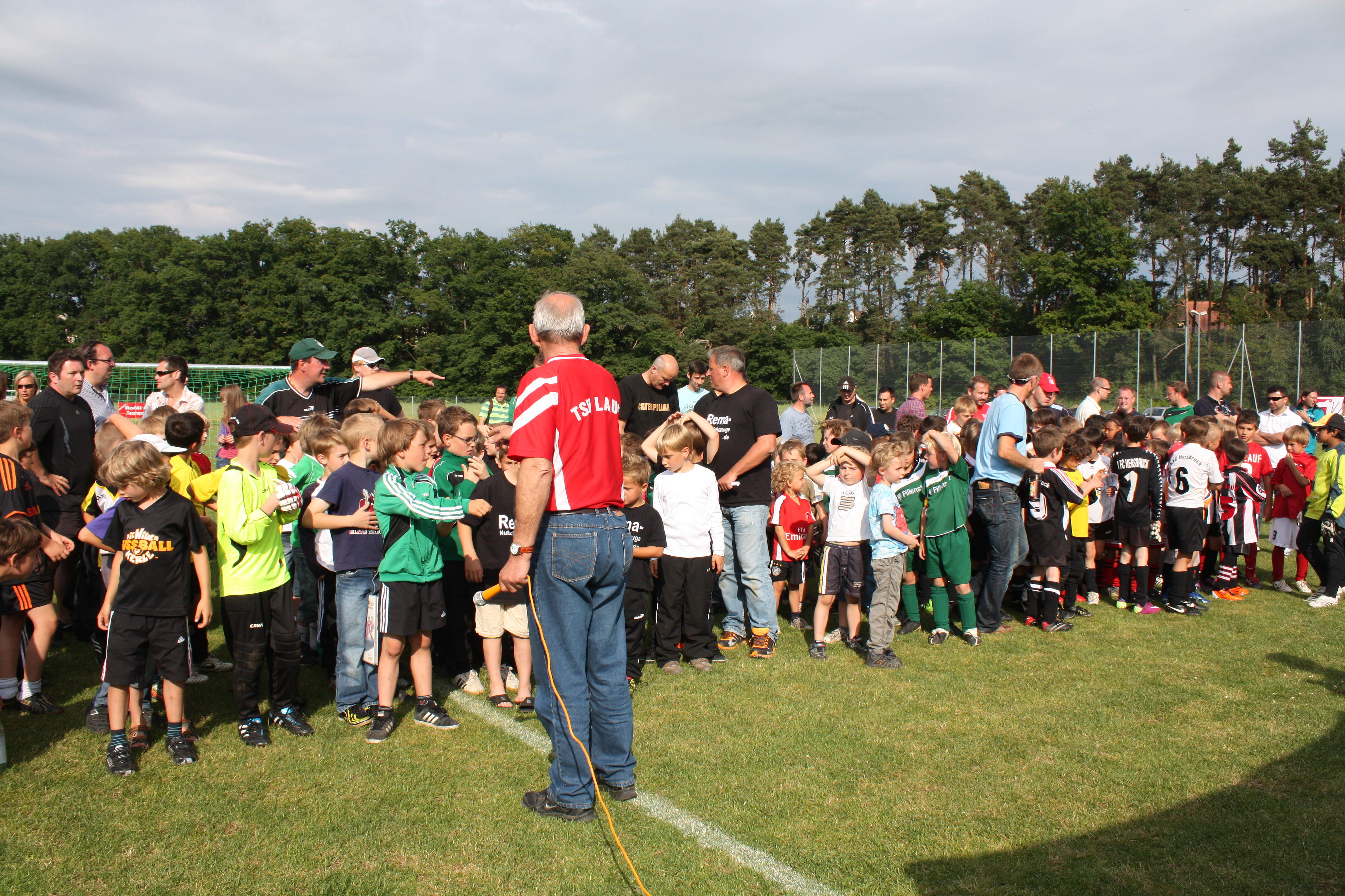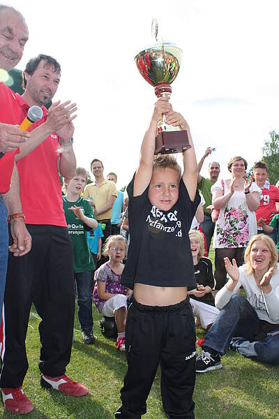 Am 2.Juni fand das Kleinfeld-Himmelfahrts-Turnier des TSV Lauf statt. Auf dem Sportplatz an der Röthenbacher Straße kämpften die Mannschaften des Vorjahressiegers SpVgg Greuther Fürth, sowie die Teams des SK Heuchling, des 1.FC Hersbruck, des SC Eltersdorf, des SV Poppenreuth und natürlich des TSV Lauf um den Wanderpokal der Sparkasse. Die Veranstaltung kann mittlerweile auf eine sehr erfolgreiche Vergangenheit zurückblicken. Auch wenn der Wettergott in der Vergangenheit nicht immer gnädig war, stellte das Turnier doch jedes Mal ein Saisonhighlight für die rund 300 teilnehmenden Kinder, deren Trainer, Eltern, Geschwister, Verwandte und Freunde dar. Und so war es auch in diesem Jahr ein tolles Ereignis und ein voller Erfolg, zumal bei strahlendem Sonnenschein, aber nicht zu hohen Temperaturen ideale Bedingungen gegeben waren.