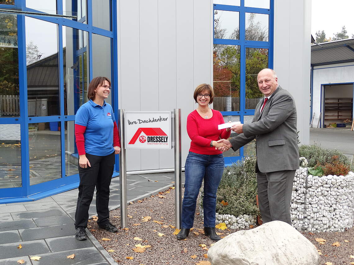 Herzlichen Dank auch an die Firma DRESSELY GMBH für die großzügige Geldspende, die Sabine Schrüfer und Alexandra Dressely, Geschäftsführerinnen der Fa Dressely GmbH, Dachdeckerei in Speikern, an Fussball-Abteilungsleiter Volkmann übergibt. Nach der im Jahr 2013 vereinbarten Bandenwerbung am TSV Sportplatz setzt die Dachdeckerei Ihre freundliche Förderung der Jugendarbeit beim TSV Lauf fort. Wir sagen dafür herzlichst: vergelts Gott!