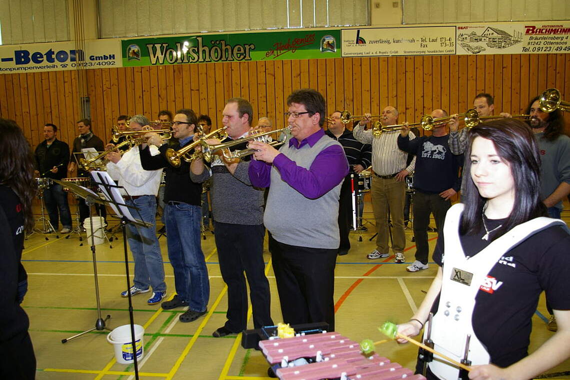 Vor allen Dingen standen jedoch das gegenseitige Wiedersehen unter den Spielleuten und der intensive Austausch von Erinnerungen und Neuigkeiten im Vordergrund der gelungenen Auftaktveranstaltung. Im Menschenwirrwarr und Durcheinander der Stimmen gelang es letztendlich, einen ersten gemeinsamen Übungstermin zu vereinbaren. Erste Übungsstunde vereinbart Die erste musikalische Übungsstunde, und viel länger wird es auch nicht sein, denn der gesellige Aspekt soll mit im Vordergrund bleiben, findet nun definitiv am Sonntag, den 13. März 2011 um 10 Uhr in den Übungsräumen auf dem TSV-Gelände statt. Hierzu sind alle „Ehemaligen“ eingeladen und alle, die sich entschuldigt hatten oder aus persönlichen Gründen nicht anwesend waren, werden natürlich dazu gebeten. Gleich eine ganze Reihe von „Ex-Spielleuten“ nutzten die günstige Gelegenheit und nahmen sich ihr Wunschinstrument zum Üben nach Hause. Alle wichtigen Informationen werden weiterhin auf der Facebookseite „Ehemaligen Spielmannszug TSV Lauf“ und auf der Internetseite der Marchingband TSV Lauf veröffentlicht.