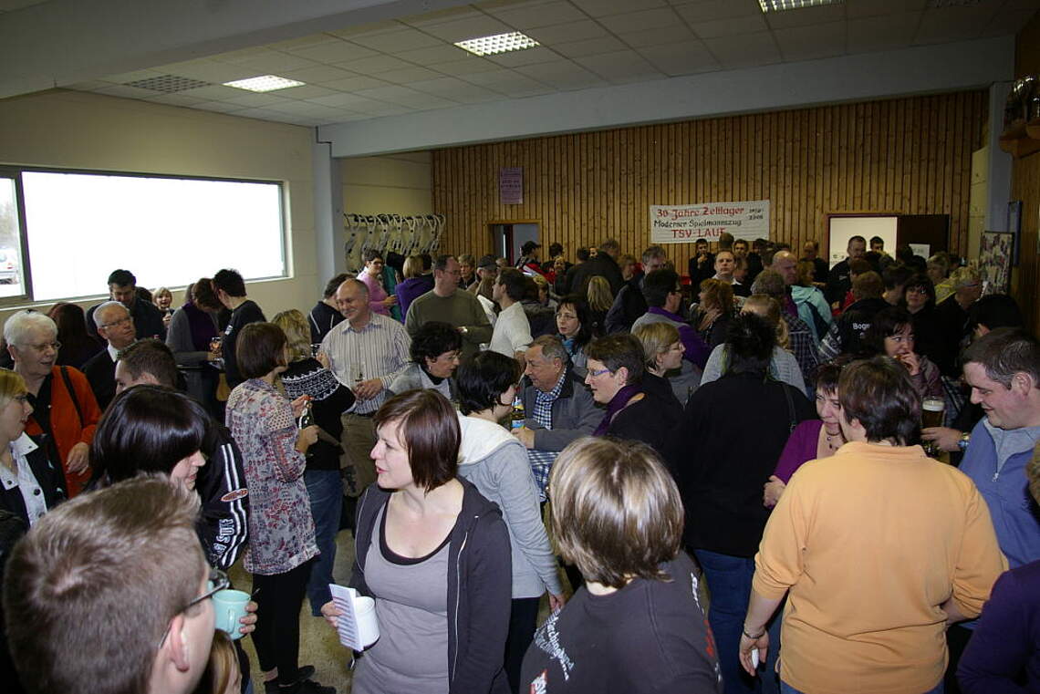 Eine Vielzahl früherer Mitglieder des Spielmannszuges TSV Lauf hatte sich zum Matinee in der Turnhalle eingefunden um sich mit den Gedanken zur Neugründung eines so genannten „Ehemaligen Spielmannszuges“ auseinanderzusetzen. Allein die Anwesenheit von geschätzten 300 Personen in den Hallen und Übungsräumen muß letztlich als eindeutige und klare Zustimmung zum Vorhaben der Wiederbelebung des früheren Spielmannszuges TSV Lauf gewertet werden. Oft war von „Gänsehautgefühlen“ und überwältigenden Eindrücken die Rede. Die Marchingband hatte eingeladen und eine Menge früherer Spielleute, die genaue Anzahl konnte wegen des großen Andrangs nicht ermittelt werden, sind dem Ruf gefolgt. Alle Altersklassen waren vertreten und ganze Familien mit Kind und Kegel zum TSV gezogen. Aber, als „Oldies“ wollen sich die Spielleute keineswegs fühlen und so ist es auch, alle machten einen sehr jugendlichen und frischen Eindruck. Der geschätzte, augenscheinliche Frauenanteil war in etwa so hoch, wie der Anteil der Männer. Teilweise nahm die Zusammenkunft den Charakter eines Klassentreffens an. Immer wieder waren freudige Umarmungen und Begrüßungen zu beobachten.