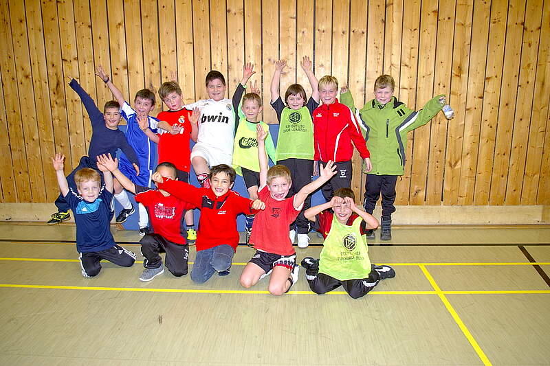 Fröhlich und lustig geht es natürlich beim gemeinsamen Hallentraining der F1- und F3-Jugend zu. Die Aufnahme entstand nach der Übungseinheit und man sieht, welche Power und welchen Spass die Kinder auch nach dem Sportunterricht haben. F1-Trainer ist Jürgen Harenz, er ist unter 0151 / 41 82 16 38 zu erreichen. F3-Trainer sind Michael Gruber und Matthias Lambrecht. Die Trainer sind entweder unter 0176 / 96 52 95 10 oder unter 0160 / 96 45 69 00 erreichbar.