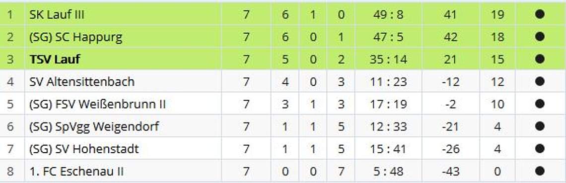 Gerade so über dem Strich steht unsere A1-Jugend. Nach dem Umbruch vor der Saison – ein Großteil der Spieler rückte in die Vollmannschaften auf oder hörte mit dem Fussball auf – war allen Beteiligten klar, dass eine schwierige Saison folgen würde. Zum Glück konnte mit Thomas Meisinger und Armin Haller ein erfahrenes und eingespieltes Duo für die Mission Klassenerhalt gewonnen werden. In zahlreichen Spielen – wie dem 5:4 gegen SV Ermreuth – zeigte sich die junge Mannschaft noch zu unabgezockt, um sich für ihre über weite Strecken gute Leistung zu belohnen. So steht man aktuell mit sieben Punkten auf dem 10.Tabellenplatz und wird wohl bis zum Saisonende um den Verbleib in der Kreisklasse kämpfen müssen. Besser machten es zahlreiche A-Jugendspieler eine Etage tiefer. Da die blutjunge Truppe fast ausschließlich aus Spielern des 2000er-Jahrgangs besteht, spielen viele der Jungs in der A- und B-Jugend.