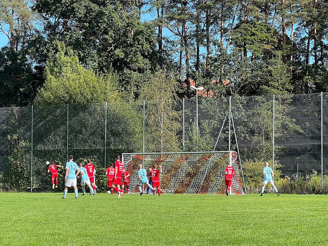 Die Führung hielt allerdings nur ganze 5 Minuten, denn dann sorgte Felix Falkner für den Ausgleich nach einer Ecke, die der TSV nur unzureichend per Kerze klären konnte, Keeper Beyer im Tor blieb und der Mittelfeldspieler zum 1-1 einschob (9.)