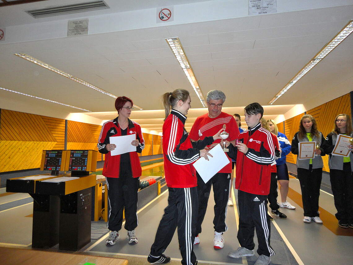 Der U14 Bereich startete zu Beginn der Saison mit 2 Mannschaften, leider gingen uns auf Grund der schulischen Belastungen einige Spieler verloren, so dass wir am Ende nur noch eine Mannschaft stellen konnten. Auch der U14- Bereich startete in der 120-Wurf-Distanz, hier allerdings mit reiner Kegelwertung (d. h. es werden nur die erzielten Ergebnisse addiert, es gab keine Satz- und Mannschaftspunkte). Stephanie Bernhard, Marco Schulze, Andreas Swojak, Christopher Knell und Dominik Zäch (vom 1.SKC Hersbruck) steigerten sich von Spiel zu Spiel und schlossen die Runde mit einem sehr guten 2. Tabellenplatz ab. Gerade unsere Anfänger Marco und Andreas zeigten Biss und überspielten stetig ihre persönlichen Bestleistungen. Stefanie Bernhard konnte zudem mit 488 Holz ein klasse Einzelergebnis vorweisen. Stefanie, Dominik und Christopher spielten sich fast immer in die TOP10.