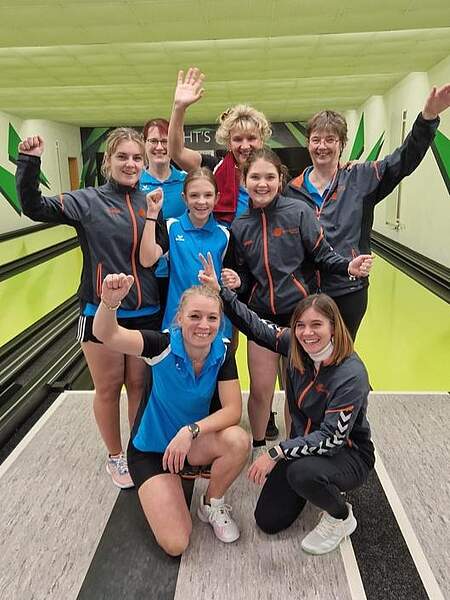 Auch bei den Damen stellte Barbara Fritsch bereits in der Startpaarung bei einem 2:2 Satzunentschieden und 557:562 Holz das spätere beste Ergebnis des ganzen Matches. Susanne Straub, die zeitgleich mit auf der Bahn war, unterlag dagegen etwas unglücklich in drei Sätzen bei 554:541 Holz. Franziska Breinbauer erledigte ihre Aufgabe dann gemeinsam mit Sarah Brunner (U-18) souverän, indem sie sich Durchgang 1 – 3 sicherte und damit den Teampunkt bereits auf dem Konto hatte. Im Endergebnis standen 513:558 Holz für sie auf der Anzeige. Sarah ließ ihrer Gegenspielerin gar keine Chance, sondern holte sich einen klaren 4-Satz-Sieg bei 476:541 Holz. Dadurch hatten sich die Mädels bereits einen Vorsprung von 1:3 MP bei 2100:2202 Holz erkämpft. Für Christine Bräu-Dümler und Claudia Schnetz war nun der Gesamtsieg das angestrebte Ziel. Doch Bräu-Dümler war diesmal einer schwierigen Gegnerin zugeteilt worden, die schon in Satz 1 mit 151:130 Holz viel Motivation zeigte. In Satz 2 konnte Bräu-Dümler mit 131:154 Holz jedoch den Spieß umdrehen und sogar mit 2 Holz in Führung gehen. Das war sehr wichtig, denn Durchgang 3 gewann wieder die Lauferin (129:144), Durchgang 3 holte sich jedoch die Hausherrin mit 145:129 Holz, so dass letztendlich ein 2:2 nach Sätzen mit 556:557 Holz den Gewinn des MP für GH besiegelte. Und auch Schnetz war in drei Durchgängen überlegen und erhöhte den bisherigen Vorsprung mit ihrem Endergebnis von 523:537 Holz um weitere 14 Holz. Mit dem 1:7 Punkte Sieg bei 3179:3296 Holz knackte das Laufer Team den bisherigen Mannschaftsbahnrekord in Heideck und belegt momentan Platz 2 der Tabelle. Bei einem Sieg in ihrem noch ausstehenden Wettkampf gegen den KC Oberaltertheim 1 könnte GH sogar als Herbstmeister in die Rückrunde starten.