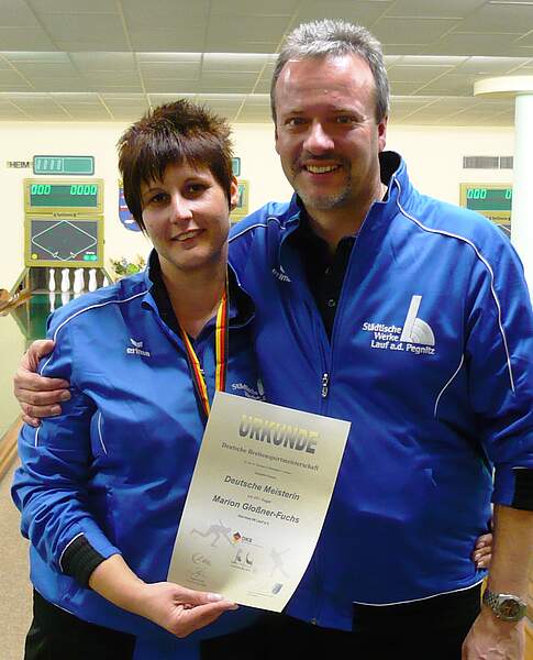 Als bayerische Landesmeisterin erwarb sich Marion Gloßner-Fuchs das Recht, zusammen mit der amtierenden Deutschen Meisterin Laura Pysik (LV Rheinland-Pfalz) am dritten Wettkampftag in der letzten Startreihe der Frauen ins Rennen zu gehen. So wusste sie genau, dass für eine Platzierung in den Medaillenrängen knapp 450 Kegel notwendig waren. Bereits im ersten Durchgang startete die Lauferin mit 161 Kegeln in die Vollen richtig durch. Beim Abräumen unterstrich sie ihre Spielstärke mit sensationellen 106 Kegeln. Mit insgesamt 267 Kegeln beim Bahnwechsel war schon frühzeitig die Entscheidung für den Titelgewinn gefallen, wofür lediglich noch 198 Kegel nötig waren. Dennoch spielte Gloßner-Fuchs mit 224 Kegeln (152/72) noch einmal ihre Klasse aus. Das Gesamtresultat von 491 Kegeln katapultierte sie schließlich im Einzel der Frauen an die Spitze aller 26 Konkurrentinnen. Zugleich erzielte sie damit das Bestergebnis der Veranstaltung und ließ selbst die Herren der Schöpfung hinter sich. Hier lag die Bestmarke bei 485 Kegeln. Damit knüpft die neue Deutsche Meisterin nahtlos an ihren Erfolg vom Vorjahr an, wo sie in dieser Disziplin die Silbermedaille gewann. Die Wochen zuvor hatte sie sich zusammen mit ihrem Trainer Roland Schiffner intensiv auf den großen Augenblick vorbereitet. Dieser verordnete seinem Schützling vor allem tägliche Einheiten im Mentaltraining, was sich nun bezahlt machte.
