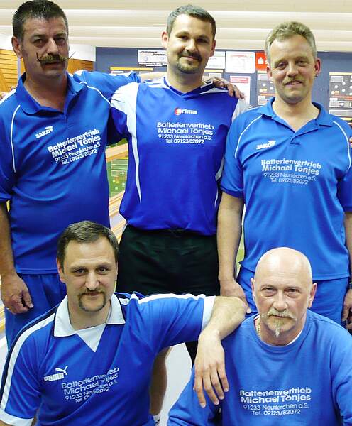 Schon nach Abschluss der Vorrunde konnten sich die Herren II mit 16:2 Punkten an die Tabellenspitze der Herren-2-Klasse setzen. Mit der gleichen Punktebilanz saß jedoch auch der schärfste Konkurrent Gut Holz Happurg unmittelbar in Lauerstellung und hoffte im Weiteren auf Fehler des Laufer Teams. Doch dazu sollte es vorerst nicht kommen. Gleich im Auftaktmatch gegen SG Draka Multimedia spielte man mit 1775:1663 die Bestleistung in der gesamten Rückrunde. Unglücklich verpasste hier Bernhard Berger mit 492 Kegel die magische 500-er-Grenze. Zur Zerreißprobe kam es in der Partie gegen SW Turbo Noris. Erst auf dem allerletzten Wurf entschied das GH66-Quartett mit 1663:1664 die Begegnung zu seinen Gunsten. Zu keiner Zeit gefährdet war der 1681:1600-Sieg gegen „Die Unentwegten“, während man schon kurz darauf beim Gastgeber „Zerm“ mit 1589:1574 eine derbe Niederlage einstecken musste. Gegen „Die flotten 56er“ fand die Mannschaft wieder zu gewohnter Stärke und ließ mit 1677:1610 nichts anbrennen. Kurios endete das Duell gegen Brikettaner, das durch ein 1662:1662-Unentschieden beiden Parteien einen Zähler auf dem Punktekonto bescherte. Mit 25:5 Punkten im Gepäck ging es zu den hartnäckigen Verfolgern von Gut Holz Happurg. Die Konkurrenten rangierten mit 24:6 Punkten auf Platz 2 und witterten ihre Chance zur Wachablösung. Erfolgreich konnten die Laufer dies aber mit 1590:1607 verhindern, so dass man nur noch zwei Punkte bzw. einen Sieg vom Titelgewinn entfernt war. Keilschieber Leinburg 2 machten mit 1708:1698 diesem Traum erst einmal einen Strich durch die Rechnung, so dass es zuhause gegen BSG KaE Erlangen 2 zum finalen Showdown kam. Den Zuschauer erwartete ein spannender Wettkampf, der wiederum erst am allerletzten Wurf zur Entscheidung führte. GH 66 gewann äußerst knapp mit 1696:1693 und sicherte sich mit 29:7 Punkten schließlich den Titel in der Herren-2-Klasse des VNPK. Zur schlagkräftigen Truppe gehörten Hartmut Schmidt, Anton Heinlein, Bernhard Berger, Martin Werthner und Coach Michael Tönjes. Desweiteren kamen die Ergänzungsspieler Maximilian Deuerlein und Peter Spannekrebs zum Einsatz. Berger erzielte mit 492 Kegel das beste Einzelergebnis, schnittbester Kegler war Schmidt mit 425,7 Kegel.