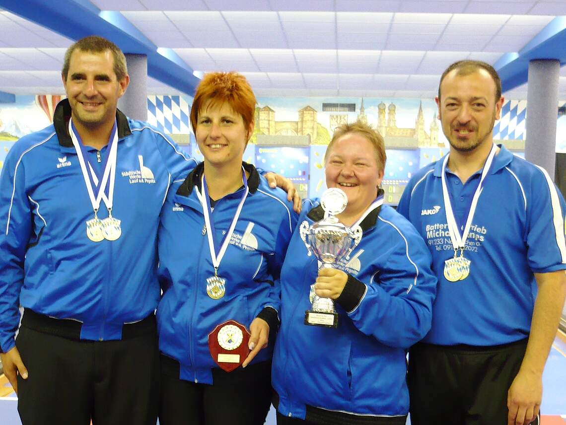Die Fahrkarte nach München löste man im Frühjahr bei der Bezirksmeisterschaft in Lauf. Bereits hier unterstrichen die Laufer ihre bestechende Form. Insgesamt sechs Teams, davon vier Spielgemeinschaften, schickte man ins Rennen. Bei den Männern überzeugte das Quartett Hartmut Schmidt (469), Anton Heinlein (423), Jens Gießwein (453) sowie Markus Berger (450) bei insgesamt 1795 Kegeln auf dem 1. Platz. Zwei Qualifikationsplätze gab es bei den Mixed-Mannschaften. Die amtierenden Bayerischen Meister Christina Enhuber (450), Marion Gloßner-Fuchs (432), Jens Gießwein (440) und Markus Berger (459) dominierten bereits hier mit 1781 Kegeln. Die Spielgemeinschaft KG Berching/GH66 mit Marga Stadler (423), Regina Fuchs (425), Hartmut Schmidt (438) und Anton Heinlein (419) holte sich mit 1705 Kegeln die Bronzemedaille.