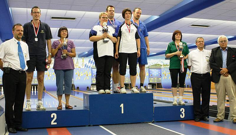 Bei den Mixed-Mannschaften gingen insgesamt 37 Teams an den Start, um mindestens die Qualifikationsmarke auf Platz 7 zu erreichen. Völlig unbeeindruckt davon fanden Christina Enhuber und Markus Gloßner in einen wahren Spielrausch. 446 und 468 Kegel standen am Ende ihrer Durchgänge an der Anzeige. Die Startpaarung erfüllte mit 914 Kegeln damit mehr als ihr Soll zu den anvisierten 1800 Kegeln. Hoch motiviert gingen Marion Fuchs und Markus Berger an ihre Aufgabe. Beide zeigten den Zuschauern Kegelsport vom Feinsten und wurden mit 487 und 474 Kegeln belohnt. Mit 1875 Kegeln konnte GH 66 Lauf den bisherigen Rekord von 1812 Kegeln einer Mixed-Mannschaft bei einer Bayerischen Meisterschaft deutlich nach oben verbessern. An dieses Traumergebnis konnten weder KC Neufinsing 2 (1853) noch Russenschieber Diepersdorf (1838) heranreichen. Mit der Goldmedaille in München knüpft man nahtlos an den Titelgewinn in Nürnberg an.