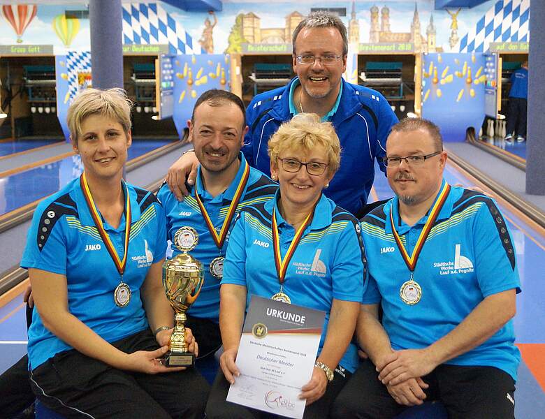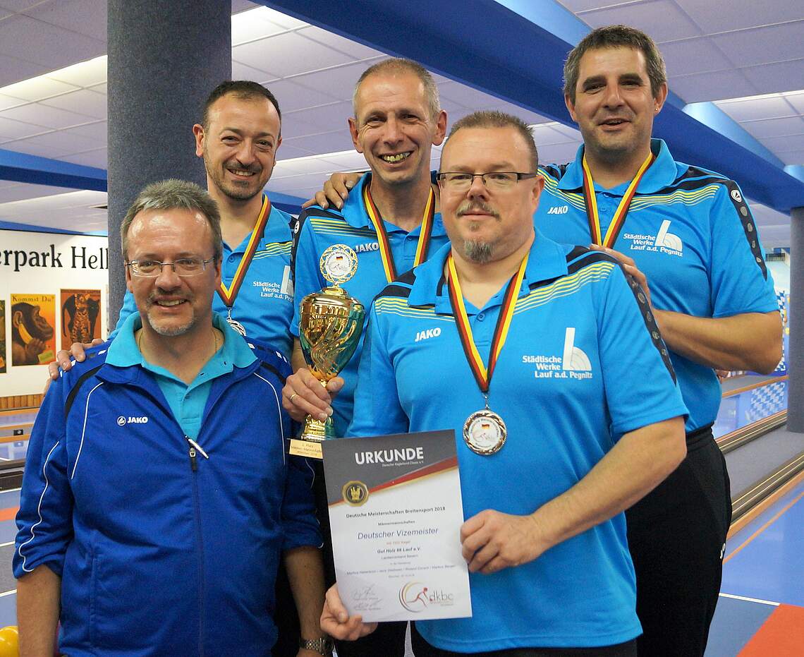 Die Breitensportkegler von Gut Holz 66 Lauf e.V. kehren mit einem kompletten Medaillensatz von den Deutschen Meisterschaften nach Hause. Die Mixed-Mannschaft wurde Deutscher Meister, während sich das Männerteam den Vizetitel sicherte. Markus Haberkorn holte sich darüber hinaus mit seiner Spielpartnerin Julia Bassek im Mixed-Tandem Bronze.