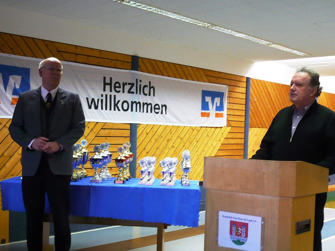 Zur Siegerehrung am letzten der 6 Spieltage konnte der GH66-Vereinsvorsitzende Walter Schiffner wieder zahlreiche Ehrengäste begrüßen. So folgten Norbert Reh (Stellvertretender Landrat des Nürnberger Landes), Georg Schweikert (3. Bürgermeister der Stadt Lauf), Stadtrat Thomas Lang, Georg Lage (1. Vorsitzender des TSV Lauf), Roland Dirscherl (Raiffeisenbank Lauf), Peter Bauer (Breitensportreferent im DKBC) und Roland Schiffner (Präsident der VBFK) der Einladung, um die Leistungen der Sportler zu würdigen. In ihren Grußworten unterstrichen diese die vorbildliche Organisation und Durchführung der weit über die Grenzen der Stadt Lauf hinaus bekannten Veranstaltung, welche mittlerweile als Geheimtipp im nationalen Breitenkegelsport gilt. Die Gäste kamen nicht nur aus allen Ecken Bayerns angereist, sondern auch aus Speyer und Mannheim. Finanziell unterstützt wurde die Stadtmeisterschaft 2011 in gewohnter Weise von der Stadt Lauf, dem Landratsamt Nürnberger Land, den Städtischen Werken Lauf, der Sparkasse Nürnberg sowie der Raiffeisenbank Lauf.