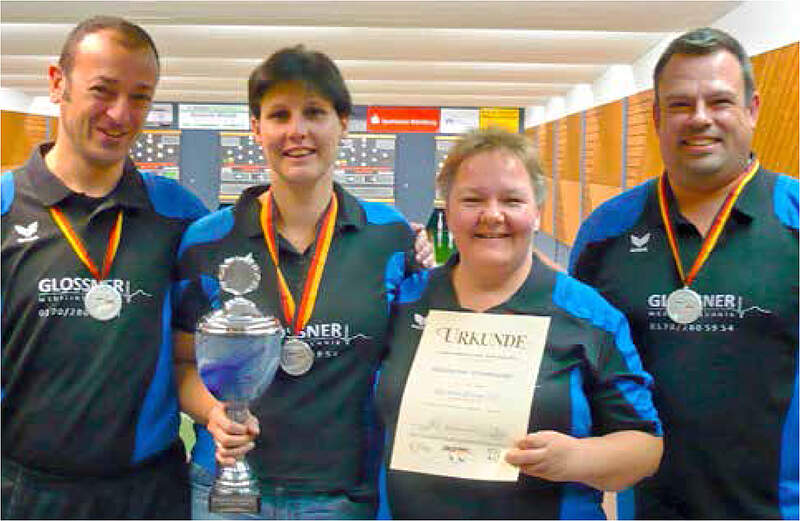 Während Regina Fuchs und Marga Stadler bereits am frühen Sonntagmorgen den Titel in der Frauenkonkurrenz mit der KG Berching souverän eingefahren hatten, gestaltete sich der Start in der gemischten Spielgemeinschaft mit den Laufer Männern als wahre Zitterpartie. Als amtierende Deutsche Meister traten sie in der letzten Startreihe an. Hartmut Schmidt und Anton Heinlein legten 395 bzw. 428 Kegel vor, so dass im Weiteren die Berchingerinnen gefordert waren. Unglücklich im finalen Abräumspiel blieben die beiden jedoch bei 435 und 454 Kegeln hängen. Mit nur 3 Kegeln Rückstand bei einem Gesamtergebnis von 1712 Kegeln blieb dem Quartett der Griff nach einer Medaille auf dem undankbaren 4. Platz verwehrt. Als beste Mixedmannschaft erwies sich die SG Stern Mannheim 1, die sich mit ebenfalls nur 3 Kegeln vor GutHolz 1966 Lauf 1 schob. Trotz anfänglicher Enttäuschung zog man mit dem Vizetitel und einem 4. Rang eine durchaus positive Bilanz.