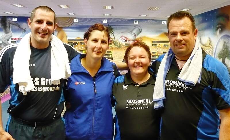 2010 in Hard musste die Mixed-Mannschaft noch mit dem undankbaren 4. Platz vorlieb nehmen. Klare Zielsetzung in Oggersheim war eine Platzierung im Medaillenbereich. Hier legten Christina Enhuber (467) und Markus Gloßner (440) auch gleich zu Beginn den Grundstein für den späteren Triumph. Marion Fuchs (445) und Jens Gießwein (469) liefen ebenfalls zur Höchstform auf. Ihr Gesamtresultat von 1821 Kegeln wurde schließlich nur noch vom amtierenden Deutschen Meister Fidele Wälder Furtwangen (1838) überboten. Bronze ging an die SG Stern Mannheim 3 (1806).