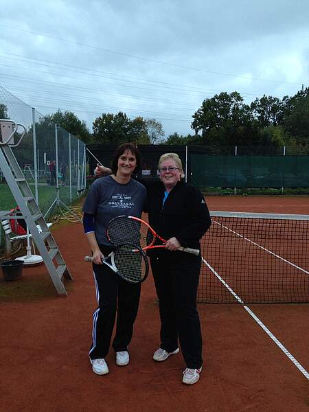 Jedes Jahr wird unter den Damen eine Funmeisterschaft ausgespielt.Hier die glücklichen Endspielgegner Monika Dietrich und Petra Ehler.
