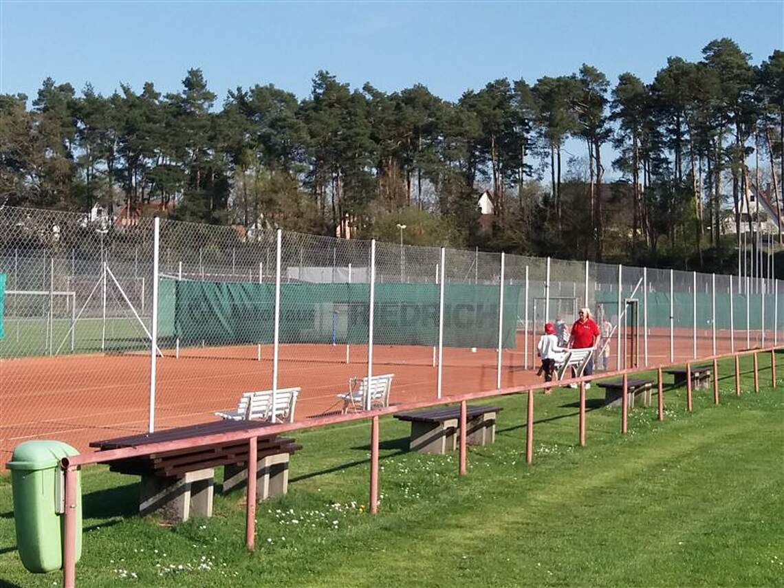 Auch die Tennisplätze bekamen ihr über den Winter eingelagertes Sommerkleid zurück. Schiedsrichterstühle und Bänke wurden gecheckt und geputzt und mit vollem Körpereinsatz wieder auf den Plätzen verteilt.