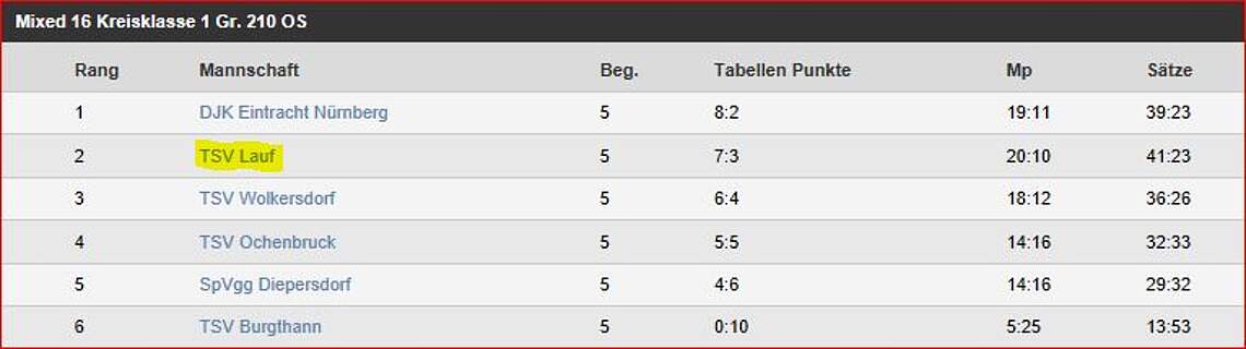 Die Saison 2017 begann für die Mixed-16 Mannschaft, in der Jan Rath, Hannes Buchbinder, Ria Xygas und Rüya Ünsal alle Spiele vereint bestritten, mit einem 5:1 gegen den TSV Burgthann Heimerfolg!