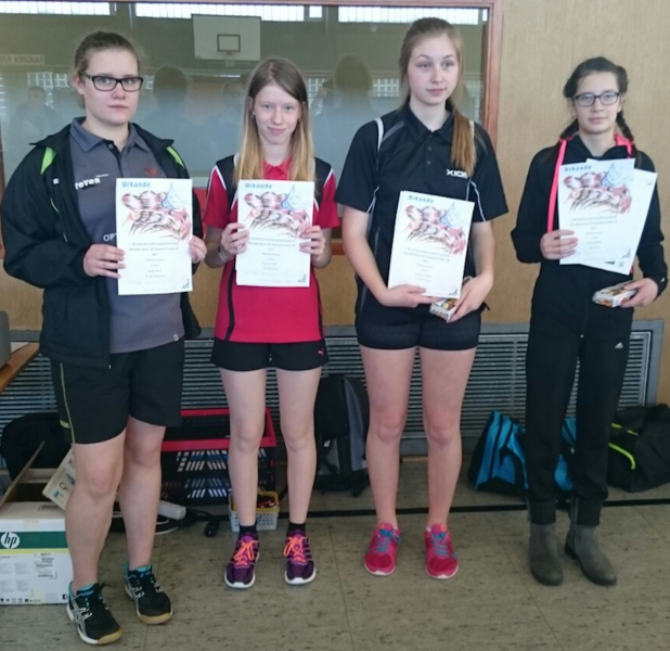 Für Andrea ging es in einer elfergruppe um die Platzierungen und sie erreichte dort hinter Jasmin Wittke und Jasmin Chudalla einen hervorragenden dritten Platz. Gegen Jasmin unterlag sie knapp in fünf Sätzen und gegen Jasmin mit 1:3. Die anderen Partien gewann sie jeweils mit keinem oder einem Satzverlust. Leon erreichte in der Vorrunde mit einer Bilanz von 2:5 nur die Platzierungsgruppe für die Plätze 9 bis 15 und erreichte dort bei seinem ersten Bezirksturnier einen sehr guten 12ten Platz.
