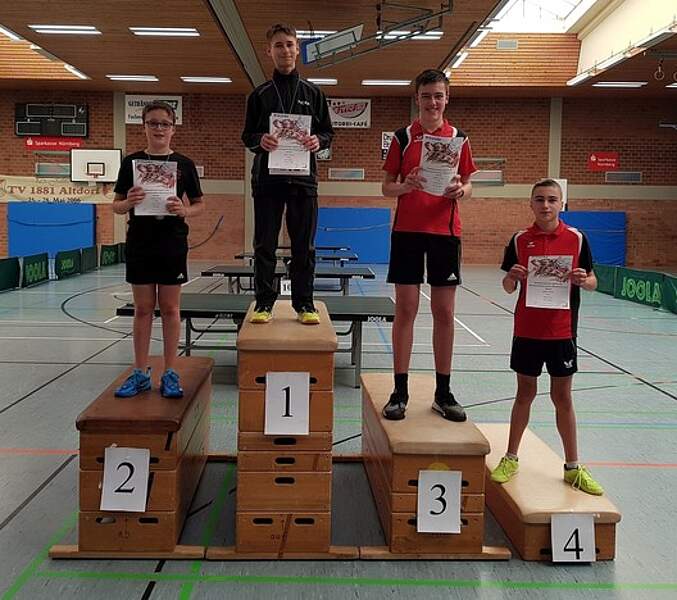 In den Vorrundengruppen setzen sich Julian und Fabian als Gruppenzweiter und Marius als Gruppenerster durch. In der KO Runde war für Fabian leider nach dem ersten Einzel bereits Schluss und am Ende erreichte er durch einen Sieg über David Cappell einen guten fünften Platz. Marius, der in der ersten Runde ein Freilos hatte, setze sich im Halbfinale klar mit 3:1 gegen Emil Schindler durch. Im Finale unterlag er dann aber mit 0:3 gegen Jannis Bögner.