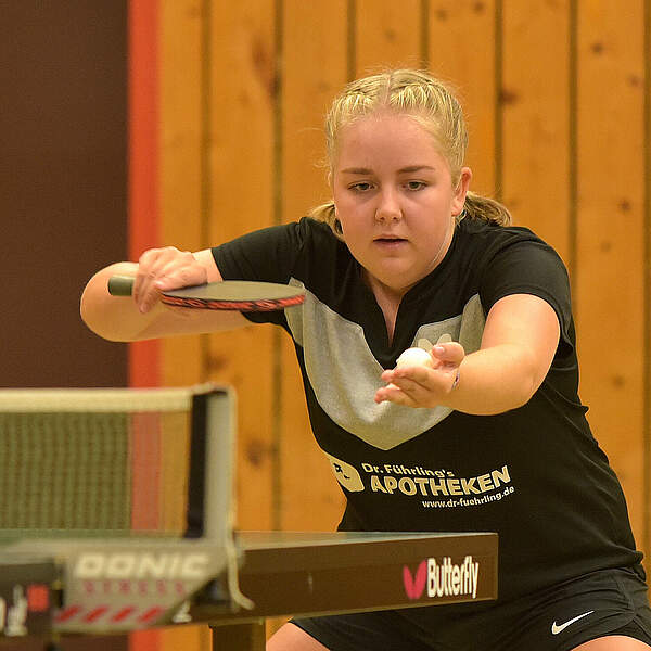 Weiter ging es nun mit den Einzeln. Emilia Karg gab gegen Julia Janitzek alles und konnte sich eine 2:1 Führung erspielen. Jedoch musste sie sich am Ende mit 12:10, 9:11, 9:11, 11:5, 11:5 geschlagen geben. Bei dem wenig später folgendem Vier-Satz-Erfolg von Saskia Ermer (6:11, 11:3, 11:4 und 11:2) hatte Maike Janitzek nur im ersten Satz eine Chance. Nun griff das untere Paarkreuz im Einzel in das Spielgeschehen ein. Zunächst musste sich Susanne Spörrer mit 10:12, 11:8, 11:6, 11:13 und 9:11 Mareike Pfeifer geschlagen geben. Die Hofstetter Spielerin Tabea Reichert das laufer Eigengewächs Alexandra Küber indes beim deutlichen 3:11, 5:11, 8:11 nie in den Griff und die Laufer holten einen weiteren Punkt.