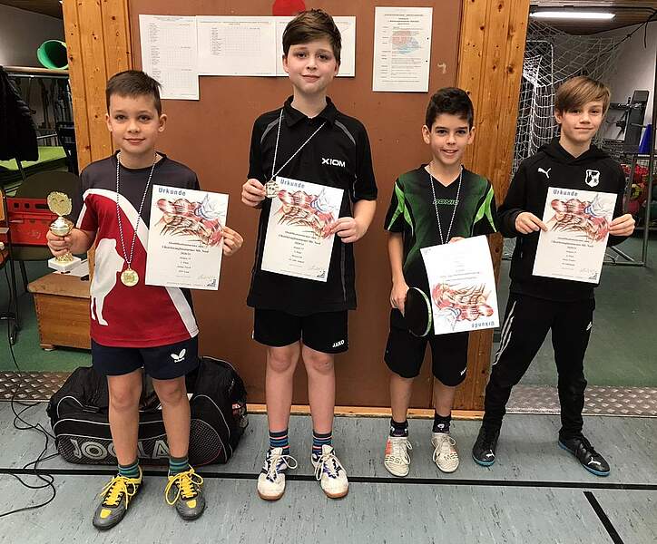 Mit dabei war auch Julian Tasch, der sich in einer 6er Gruppe im Modus „Jeder gegen Jeden“ durchsetzen musste. Und das tat er mit Bravour. Mit lediglich einem Satzverlust stand Julian am Ende schließlich ganz oben und durfte einen Pokal in seine Sammlung aufnehmen.