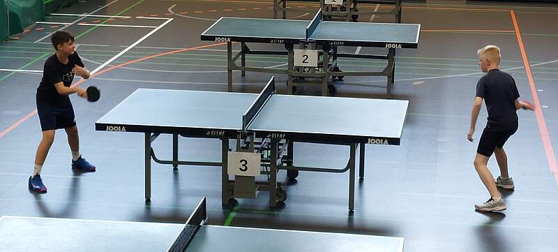 Bei den Jungen wurde der Einzelspielbetrieb in zwei Gruppen (je sieben Teilnehmer) mit Jeder gegen Jeden und einer anschließenden Endrunde mit Ergebnisübernahme gespielt, wobei die zukünftigen Mannschaftskollegen in unterschiedlichen Gruppen starteten, was nicht sicher war, da Fabian in der laufenden Turniersaison noch für Pottenstein antritt. Während Julian etwas holprig mit einem 3:0 und einem 3:1 Sieg in das Turnier startete, hatte Fabian gleich zu Beginn seine Pause, die der ungeraden Spieleranzahl in der Gruppe geschuldet war. Als Julian schon seinen dritten Sieg mit ebenfalls 3:1 Sätzen einfahren konnte, startete Fabian nun auch in das Turnier und das ebenfalls mit einem 3:0 Sieg. Im vierten Spiel von Julian funktionierte dann allerdings nichts mehr und er musste sich überraschend klar mit 0:3 Sätzen geschlagen geben. Da in dieser Runde alle Spiele zeitgleich starteten und Fabians Spiel ausgeglichener war, konnte der Laufer Coach Stephan Breier bei dem Spiel seines neuen Spielers ab dem 4. Satz zusehen und beim Spielstand von 1:2 Sätzen und 5:9 Punkten mittels einer Auszeit eingreifen. Die angesprochenen Anpassungen konnte der neue Laufer Jugendspieler sehr gut umsetzen, da er diesen Satz noch mit 13:11, den darauf folgenden Satz zu fünf und somit das Spiel gewann. Von dieser Leistung euphorisiert gewann Heid alle weiteren vier Spiele und wurde mit 6:0 Spielen klarer Gruppensieger.