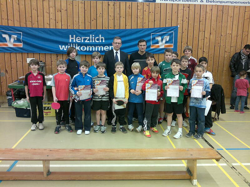 Die Sieger des Ortsentscheids der Tischtennis-Mini-Meisterschaften heißen Nils Meczulat (8 Jahre und jünger), Jan Roedel (9-10 -jährige) und Ferdinand Ziegler (11-12 –jährige). Die drei setzten sich in jeweils in ihrer Altersgruppe gegen starke Konkurrenten durch. Insgesamt waren am Sonntag den 10.02. in der Sporthalle des TSV Lauf 17 Jungen am Start. Die „minis“ zeigten unter den Augen zahlreicher Zuschauer sehenswerte und engagierte Ballwechsel. Dabei stand jedoch zu jedem Zeitpunkt die sportliche Fairness im Mittelpunkt. Viele Helfer unterstützen die Kids bei der Einhaltung der Tischtennisregeln. Die Eltern stärkten sich währenddessen am Kuchenbuffet, welches von Tischtennisspielerinnen und Spielern des TSV Lauf vorbereitet wurde. Zum Schluss durften sich alle Akteure über einen kleinen Preis freuen, der von Herrn Roland Discherl von der Laufer Raiffeisen Spar + Kreditbank überreicht wurde.